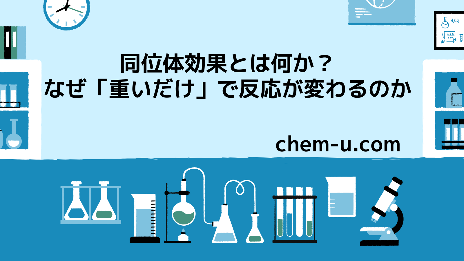 CATEGORY 同位体 FT-IRでわかる同位体効果 ― O–H と O–D の波数の違い 2026.02.09 同位体 yusuke ケム。 同位体効果とは何か?―なぜ「重いだけ」で反応が変わるのか 2026.02.09 同位体 yusuke ケム。 重水とは何か?―「水なのに水じゃない」同位体の世界 2026.02.09 同位体 yusuke ケム。 同位体とは何か?―同じ元素なのに重さが違う理由 2026.02.09 同位体 yusuke ケム。